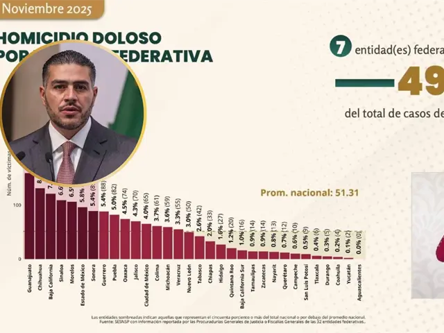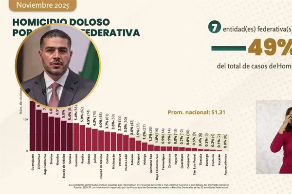 La lista de los 10 estados de la República Mexicana con más homicidios dolosos en noviembre es la siguiente: