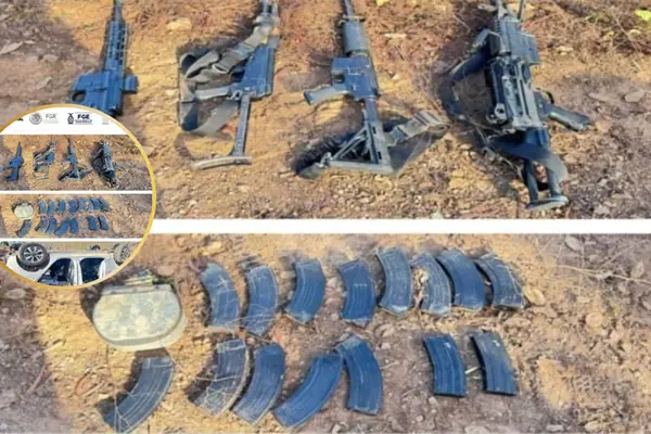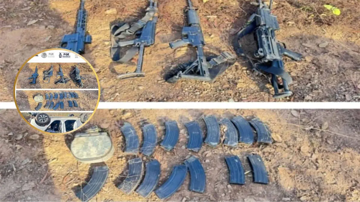 Tras una enfrentamiento entre civiles y autoridades en Tepuche aseguran un vehículo con reporte de robo, armas largas, cargadores, cartuchos y un dron