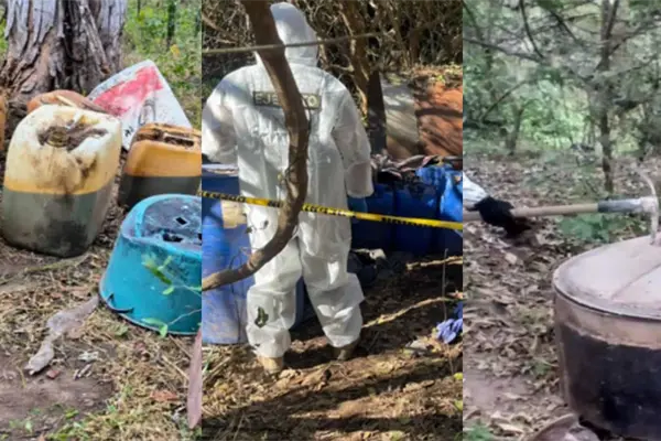 En el marco de la Operación Búsqueda, Localización y Destrucción de Laboratorios Clandestinos, al realizar reconocimientos terrestres, a pie y motorizados, en los municipios antes mencionados, el personal militar localizó 11 áreas de almacenamiento de precursores químicos que contenían lo siguiente: