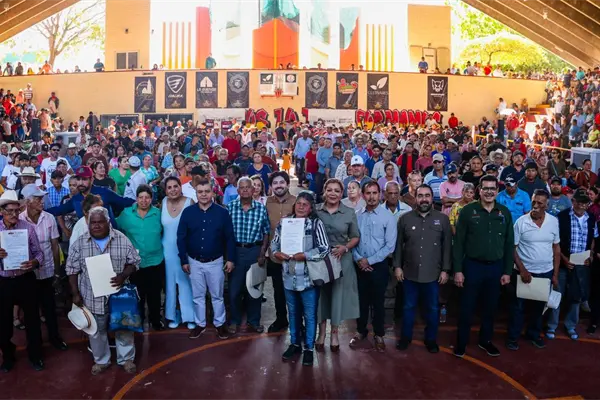 Por instrucciones del Gobernador Rubén Rocha Moya, el Secretario de Bienestar y Desarrollo Sustentable, Arq. Omar López Campos, acompañado de la Presidenta Municipal de Rosario, Lic. Claudia Liliana Valdez Aguilar, y autoridades federales de regularización de la tierra, realizó la entrega de más de 1,500 títulos de propiedad y parcelarios a familias del municipio de Rosario que durante años habían esperado certeza jurídica sobre su patrimonio.