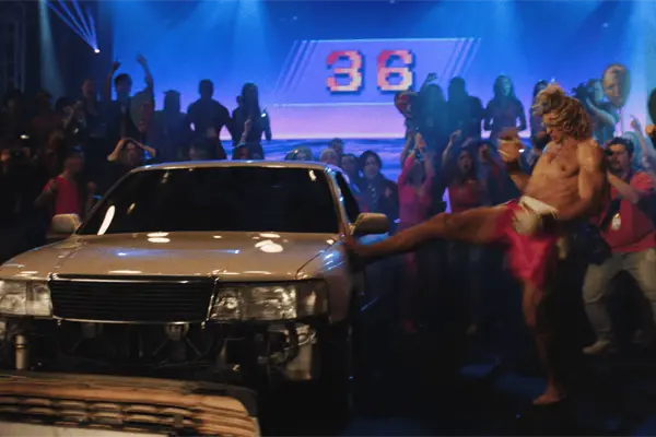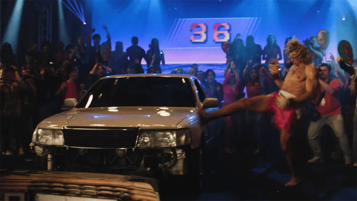 Incluso, aparece brevemente una escena que sin duda será el deleite de los fans, en la que uno de los peleadores destruye a patadas un vehículo, tal como la mítica fase de bonus del videojuego original.