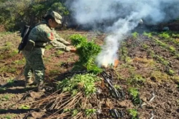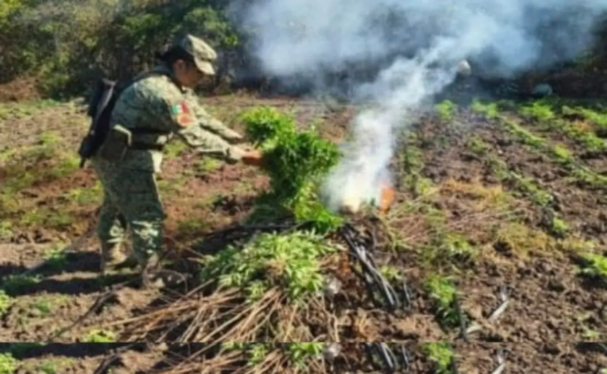Se indicó que el Personal del Ejército Mexicano, en coordinación con la Guardia Nacional, la Secretaría de Marina, la Secretaría de Seguridad y Protección Ciudadana, la Fiscalía General de la República, la Fiscalía General del Estado y la Secretaría de Seguridad Pública de Sinaloa, a través de la Policía Estatal Preventiva, localizó un plantío de marihuana en la zona rural de Culiacán.