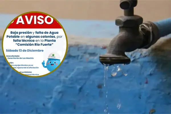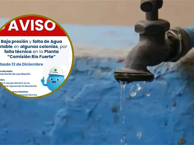 Una falla técnica en la Planta Comisión Río Fuerte provoca baja presión y falta de agua potable en la zona norte de la ciudad; JAPAMA ya trabaja para restablecer el servicio.