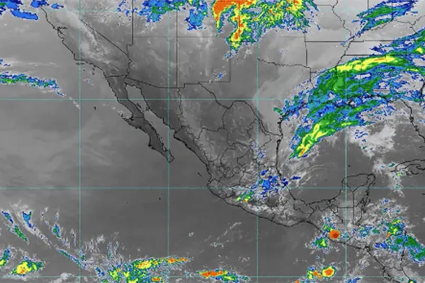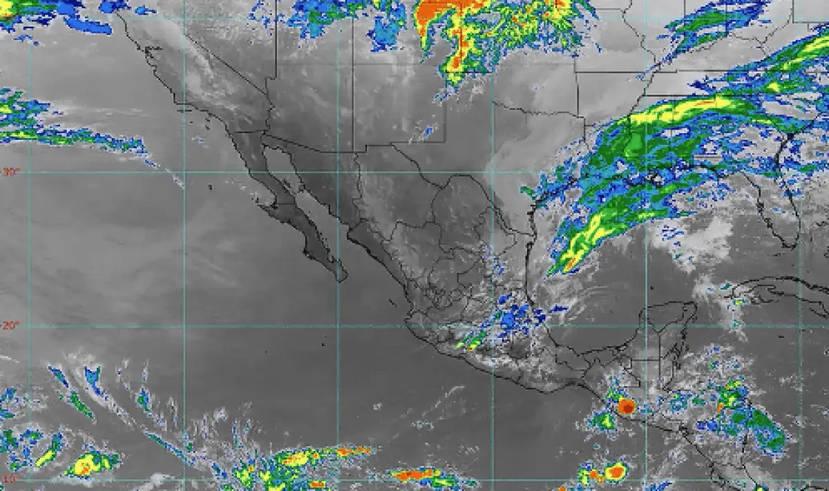 Mañana, la vaguada polar en niveles medios y altos de la atmósfera mantendrá la probabilidad de chubascos y lluvias fuertes con descargas eléctricas y posible caída de granizo en los estados del occidente, centro y sureste del país, incluido el Valle de México y la Península de Yucatán, con lluvias puntuales muy fuertes en Chiapas.