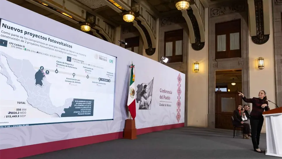 Durante la conferencia "La Mañanera del Pueblo", la presidenta detalló que el Gobierno de México garantizará que 54 % de la energía eléctrica sea generada por el Estado y 46 % por inversión privada, bajo un esquema que devuelve planeación y orden al sector eléctrico nacional.