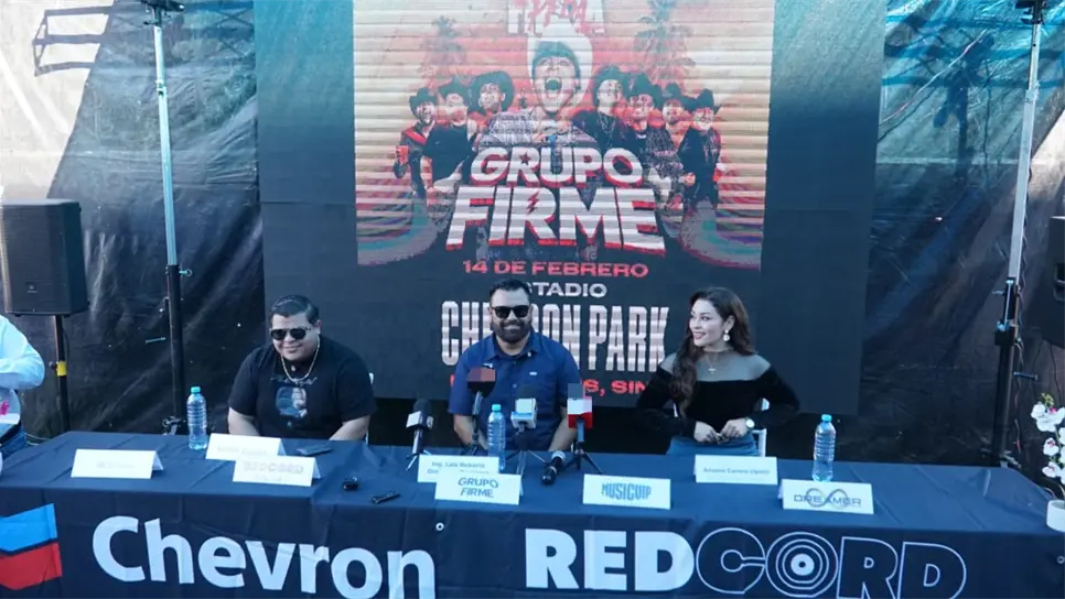 El anuncio fue encabezado por Víctor Zavala, integrante de Grupo Firme; Luis Roberto Ontiveros Zaragoza, Director de Pacífico Fondo Empresarial Chevron; y Arianna Carrera, Directora de Turismo del municipio de Ahome, quienes coincidieron en que este concierto representa un fuerte impulso cultural, turístico y económico para el norte del estado.