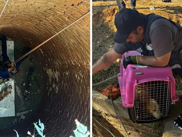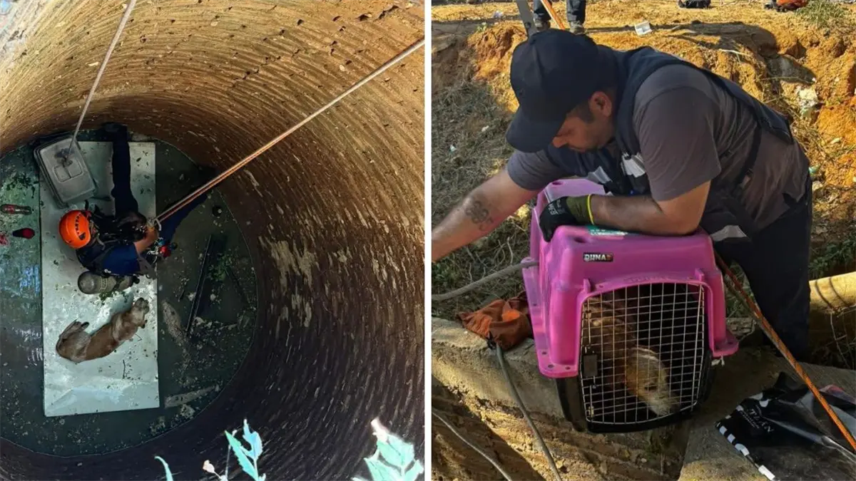 Un perrito que había caído a un tiro de agua de aproximadamente 20 metros de profundidad fue rescatado esta tarde por elementos de Bomberos Mazatlán.