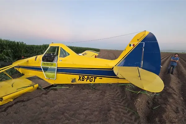 El accidente ocurrió en tierras de cultivo de la sindicatura Benito Juárez, mientras la aeronave realizaba labores de fumigación hizo sufrió un desperfecto mecánico