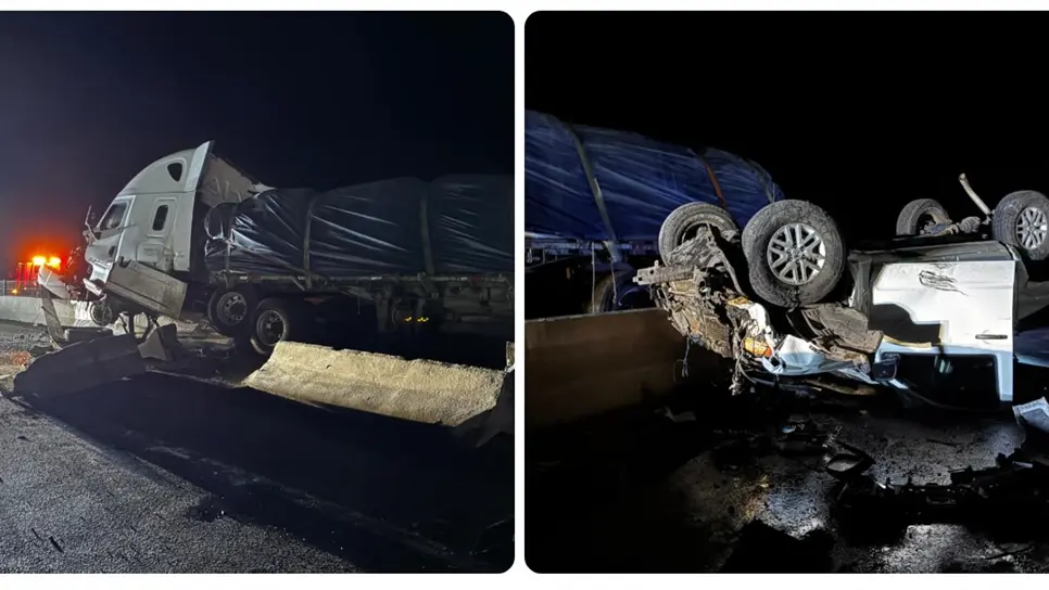 Mientras que el tráiler involucrado terminó impactado contra el muro de contención que divide ambos carriles y prácticamente quedó montado.