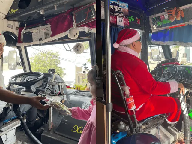 Esta acción arrancó, por supuesto, el asombro de los usuarios, que no esperaban ver a "Santa" al volante, y sobre todo, provocó la sonrisa de los pequeños que recibieron su regalo adelantado mientras viajaban por la ciudad.