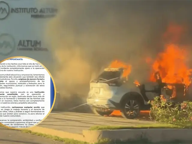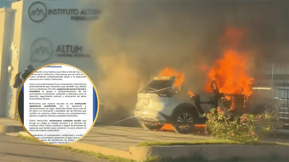 El colegio Altum de Culiacán exigió acompañamiento de las autoridades tras el incendio de un vehículo a las afueras de sus instalaciones la tarde del viernes 26 de diciembre.