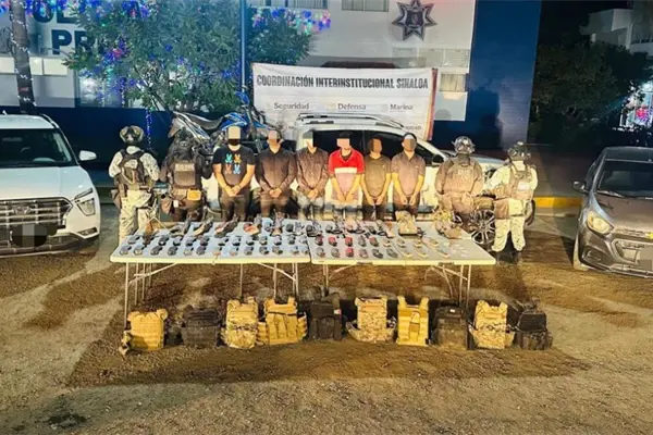 Personal de la Secretaría de Seguridad Pública de Sinaloa, a través del Grupo de Operaciones Especiales Sinaloa (GOES) de la Policía Estatal Preventiva, en coordinación con el Ejército Mexicano, la Guardia Nacional, la Secretaría de Marina, la Fiscalía General de la República, la Secretaría de Seguridad y Protección Ciudadana y la Fiscalía General del Estado, detuvo a seis civiles y aseguró diverso armamento y vehículos en Navolato tras una agresión.