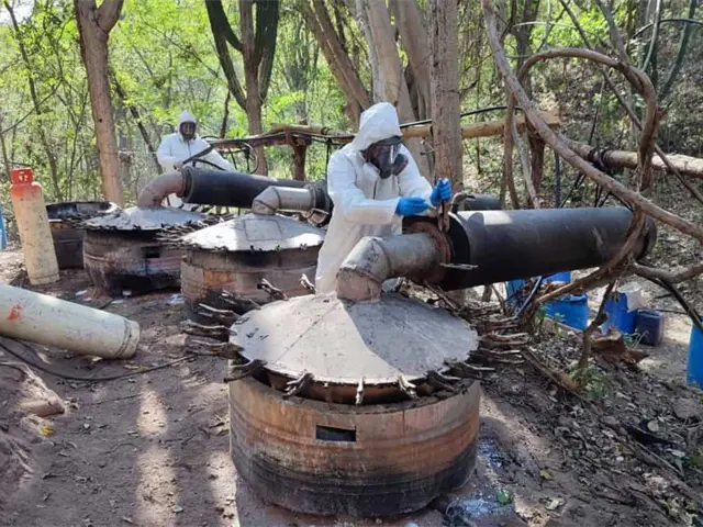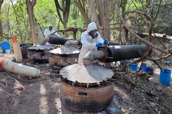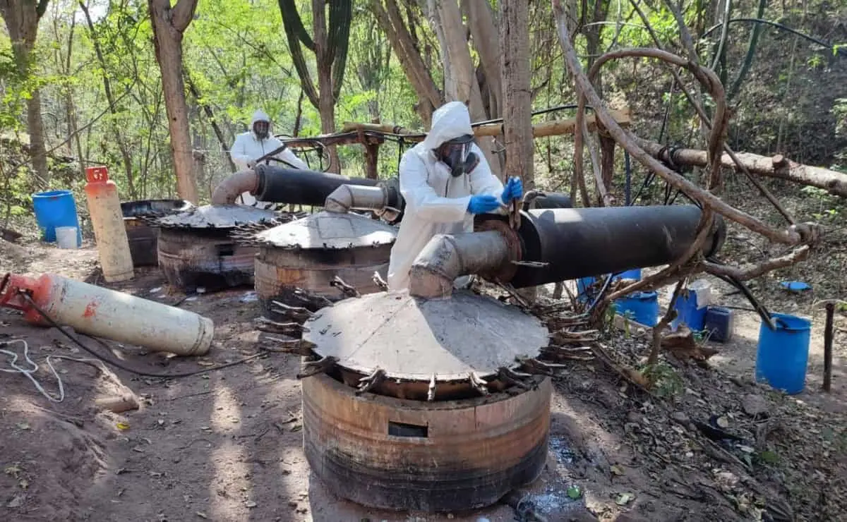 Durante un recorrido terrestre en el poblado de Corral Viejo de Culiacán, los elementos del Ejército localizaron un laboratorio clandestino para la elaboración de droga sintética.
