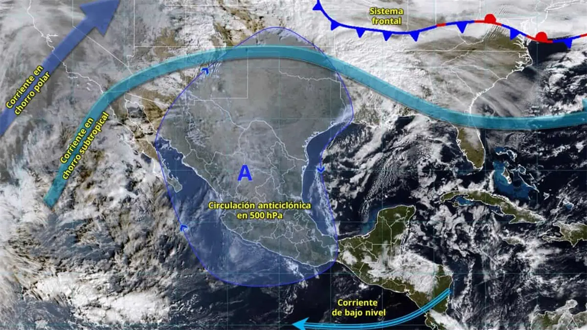 Un frente frío se extenderá sobre Baja California y se asociará con las corrientes en chorro polar y subtropical originando chubascos en Baja California. Y un segundo frente frío se extenderá sobre noreste del país, propiciando descenso de temperatura en dicha región.