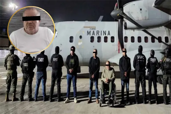 La Secretaría de Seguridad y Protección Ciudadana (SSPC) reveló imágenes del traslado a Ciudad de México de Pedro Inzunza Noriega, más conocido como "El Sagitario", capturado junto a tres de sus operadores en un fuerte operativo federal desplegado la tarde del 31 de diciembre, en vísperas de Año Nuevo, en Culiacán, Sinaloa.