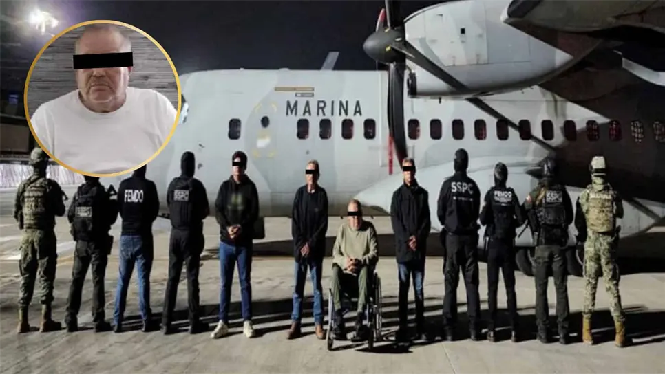 En las imágenes compartidas por la SSPC se pudo observar a "El Sagitario" sentado en una silla de ruedas, mientras que al lado estaban parados sus tres operadores detenidos, custodiados por elementos de la Secretaría de Marina, SSPC y Fiscalía Especializada en Materia de Delincuencia Organizada (FEMDO) de la Fiscalía General de la República (FGR).