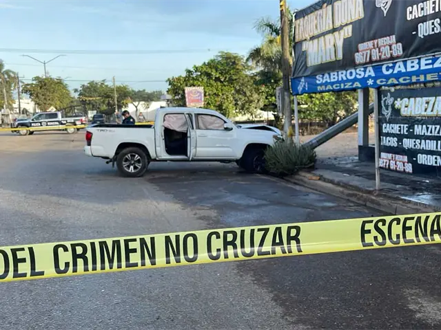 Durante el ataque balazos el director de tránsito perdió el control de la unidad y se estrelló de frente contra un poste de concreto de la Comisión Federal de Electricidad.