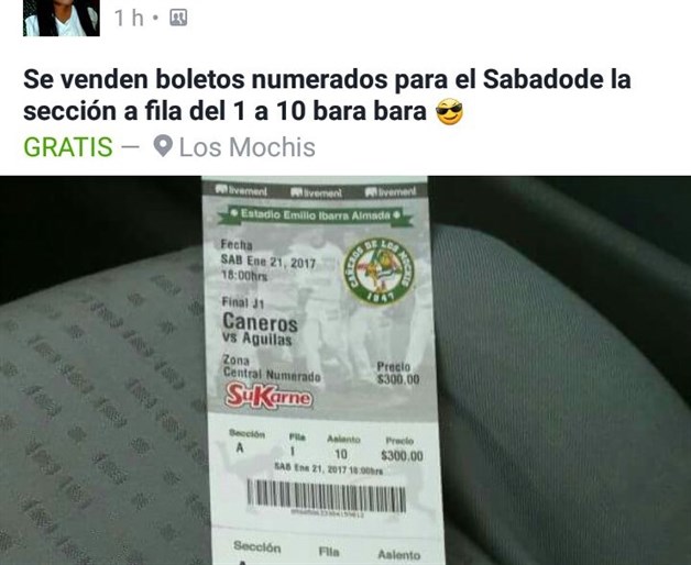 Los Mochis, Sin.- A pesar de que la Directiva de Club Cañeros de Los Mochis tomó varias medidas para inhibir la reventa de boletos, no pudieron acabar con esta práctica, y a través de las redes sociales se ofertan las entradas al mejor postor.
