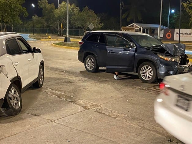 La colisión entre dos camionetas cerradas, una en color blanco y otra en color gris, se registró en la avenida Sábalo-Cerritos y Avenida del Yugo, en la entrada al Estero del Yugo.