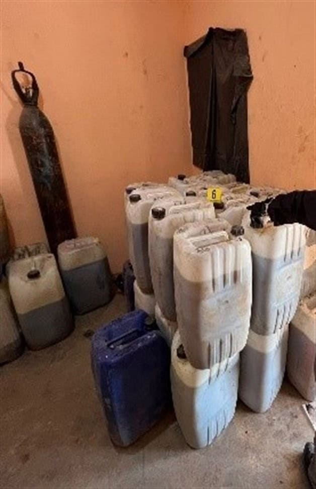 Además, en una tercera acción aseguraron nueve mil 99 litros 830 mililitros de metilamina, una báscula y una cuatrimoto.