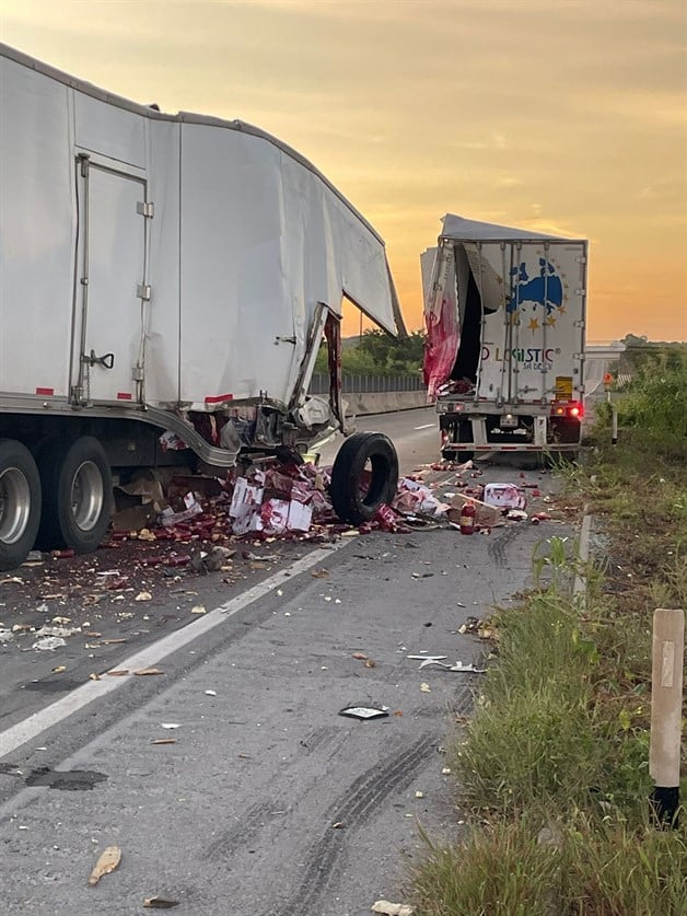 Un tráiler que circulaba de norte a sur por la carretera Mazatlán-Culiacán chocó por alcance contra otra pesada unidad en el kilómetro 14 de la vialidad de cuota la madrugada de este martes.
