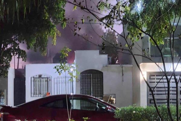 Daños materiales por varios miles de pesos provocó el incendio de un tanque de gas en una vivienda en el fraccionamiento Acueducto en Culiacán .