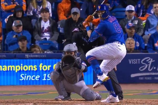 Pero Meneses al ver que el jardinero estaba jugando profundo, este aceleró el paso y llegó de manera apretada a segunda base con un limpio doblete y así su primer imparable con la casaca de los Mets.
