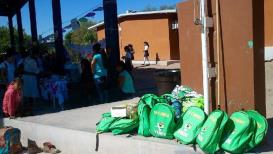 Acusan a "Chema" Flores de entregar mochilas en escuela