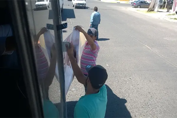 Por último, el equipo de Fórmula Noticias detectó que tras ser sorprendidos los concesionarios, operadores y el equipo de campaña del Partido Revolucionario Institucional (PRI) colocando publicidad proselitista en el antiguo centro de revisión vehicular, propiedad de la Procuraduría General de Justicia del Estado (PGJE), este jueves se trasladaron a las calles Aquiles Serdán y Zaragoza para seguir con el rotulado de los camiones.