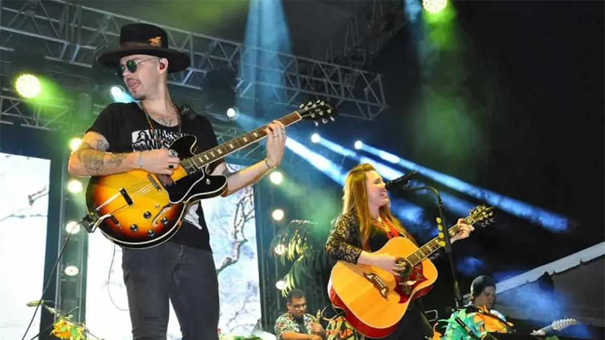 El dúo mexicano arribó al escenario, que fue ambientado con un toque tropical, que combinó a la perfección la frescura de los jóvenes cantantes con la calidez de los culichis.