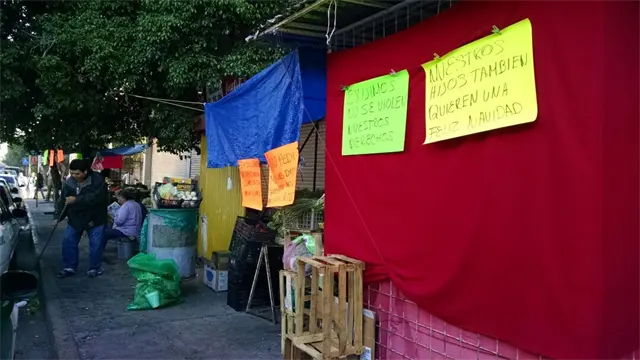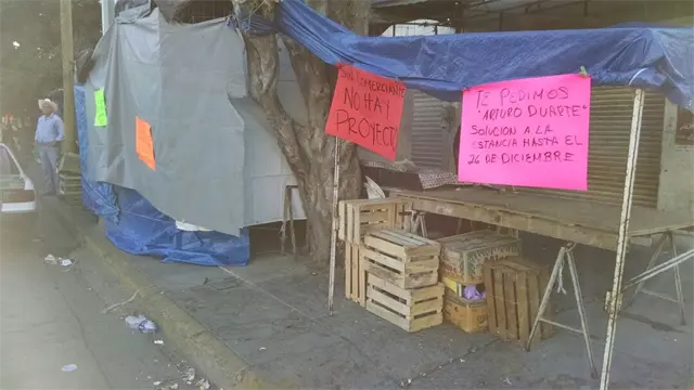 José Ángel Sánchez, líder comerciante, señaló que también harán un plantón en Palacio Municipal y que ni con la fuerza pública los moverán.