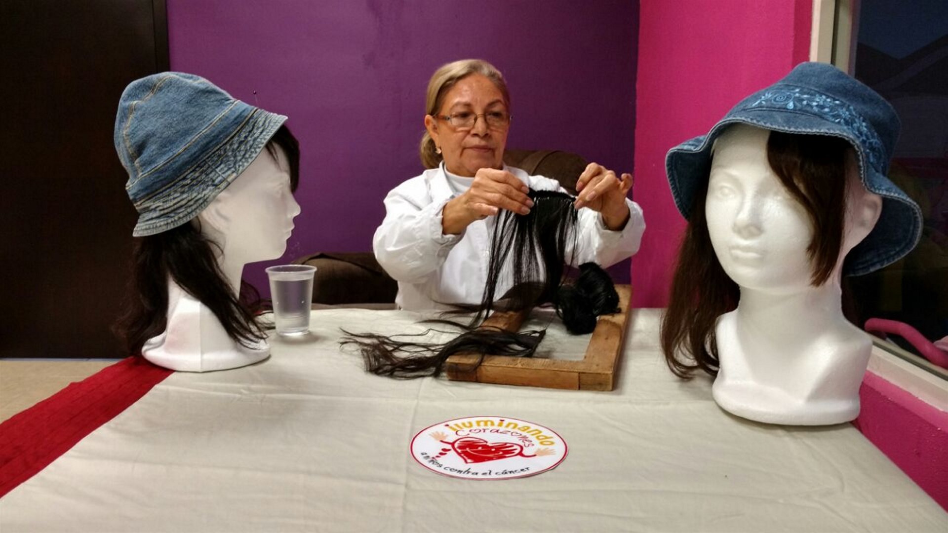“La idea nació cuando la mamá de una joven a la que le diagnosticaron cáncer a los 17 años y que perdió su cabello desde el primer tratamiento, se las ingenió para simular una gorra con cabello”, dijo Castillo Negrete.