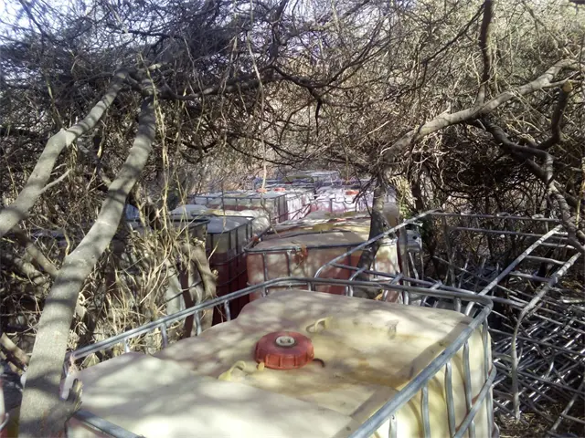 Además de los bidones de mil litros de capacidad, había también algunos bidones de 20 y 40 litros.