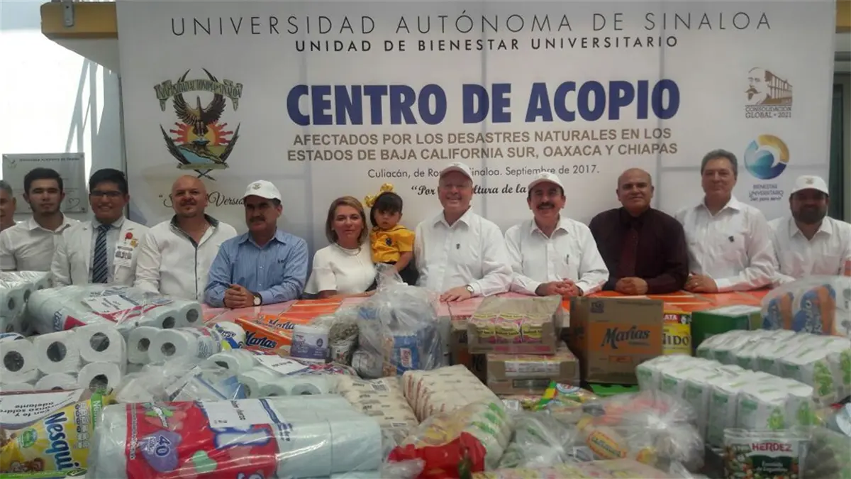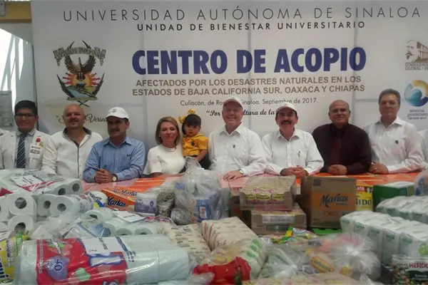 Culiacán, Sin.- El Rector de la Universidad Autónoma de Sinaloa, Juan Eulogio Guerra Liera, visitó el centro de acopio ubicado en la Unidad de Bienestar en Culiacán, en donde se pretende recaudar víveres para las personas afectadas por el sismo de 8.2 grados y que por consecuencia sufrieron afectaciones mayores en los estados de Veracruz, Guerrero y Oaxaca.