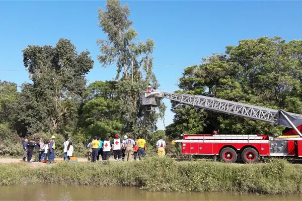 También arribaron elementos del cuerpo de Bomberos y de Protección Civil de Ahome para ayudar en las labores de rescate del cuerpo el cual quedó entre las ramas del árbol.