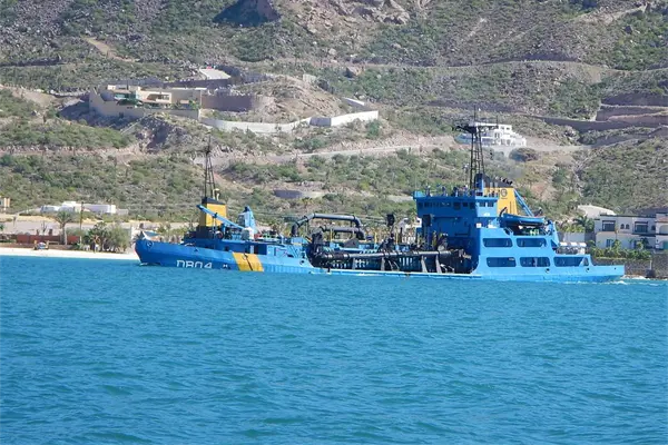 En el lugar se observó que se utilizaba un equipo de dragado autopropulsado tipo buque, con matrícula DR04, propiedad de la Semar.