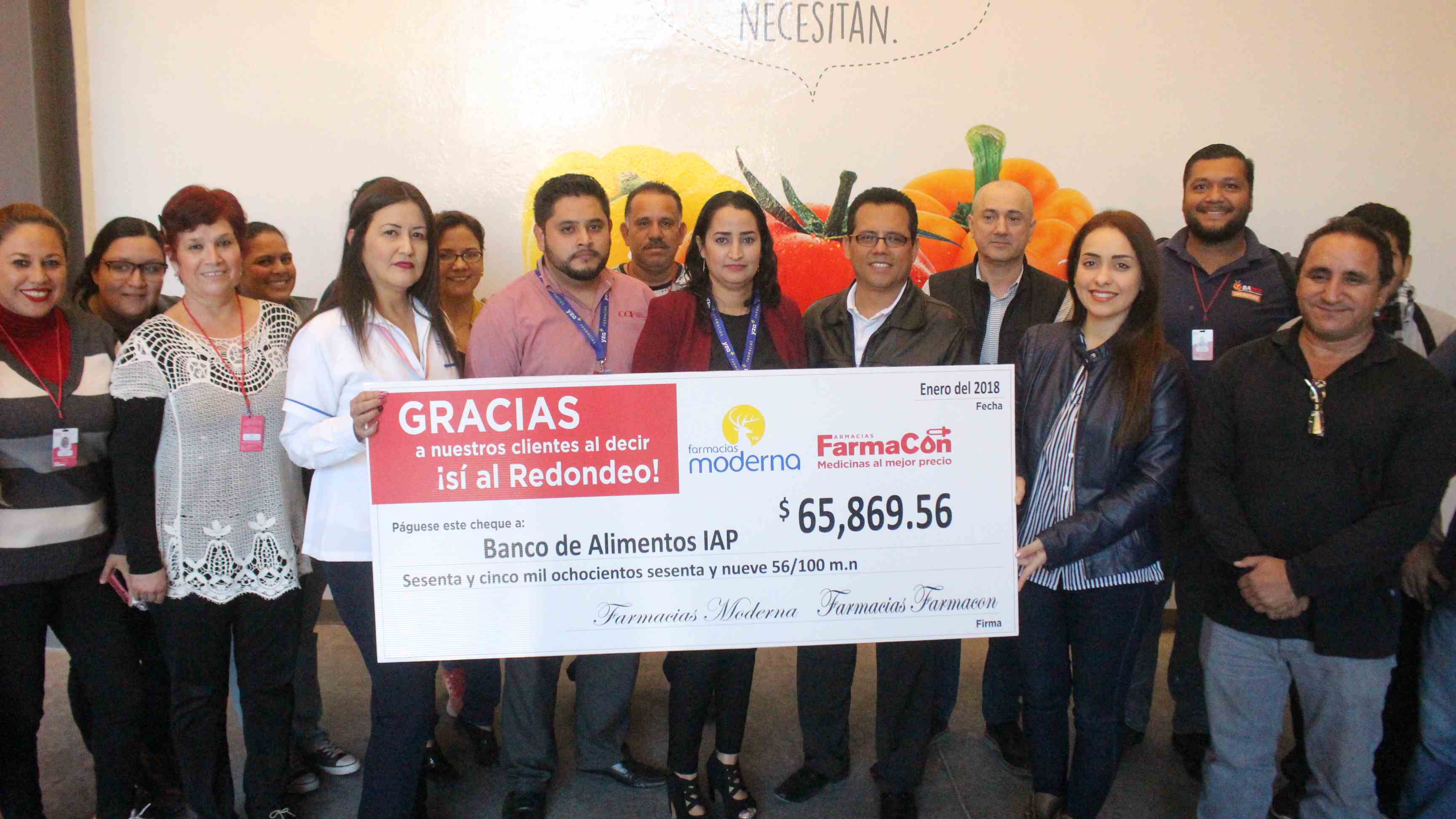Banco de Alimentos recibe donativo de redondeo de Farmacias Moderna