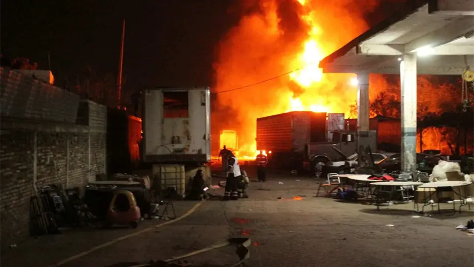 Culiacán, Sin.- Al menos seis tráileres fueron consumidos por el fuego y varias cajas también resultaron dañadas, al registrarse un incendio dentro de un lote donde guardaban camiones de carga, ubicado en la comisaría de Bacurimí.
