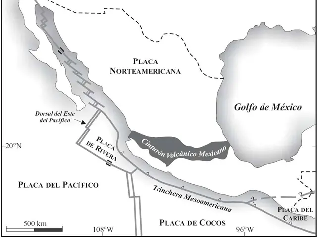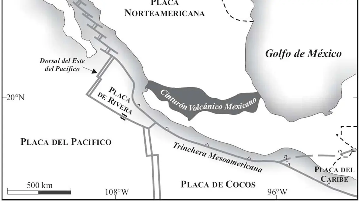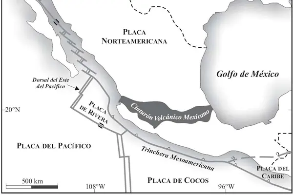La Placa del Pacífico incluye la península de Baja California, el oeste de California y al Océano Pacífico; la del Caribe abarca el sur de Chiapas, las islas caribeñas y los países de Centroamérica.