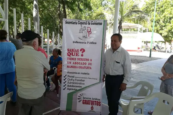 “Defensoría Pública en tu Comunidad” es un programa que pertenece la Secretaría General de Gobierno, misma que desde el 2017 ha estado en distintas comunidades a lo largo y ancho de nuestro estado, en donde se brinda asesoría jurídica para todos los interesados, desde Rectificación de Actas, Intestados, Pensiones Alimenticias, Divorcios, entre otros asuntos jurídicos.