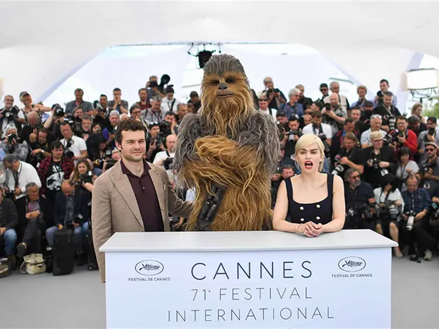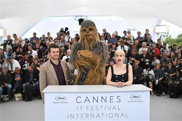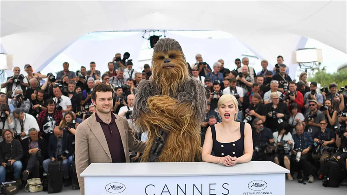 A Cannes acudieron los principales actores de la nueva entrega de la serie creada por Georges Lucas incluido "Chewbacca" y el protagonista de la cinta, Alden Ehrenreich, quien interpreta el papel de "Han Solo", que hace años estelarizó el mítico actor Harrison Ford.