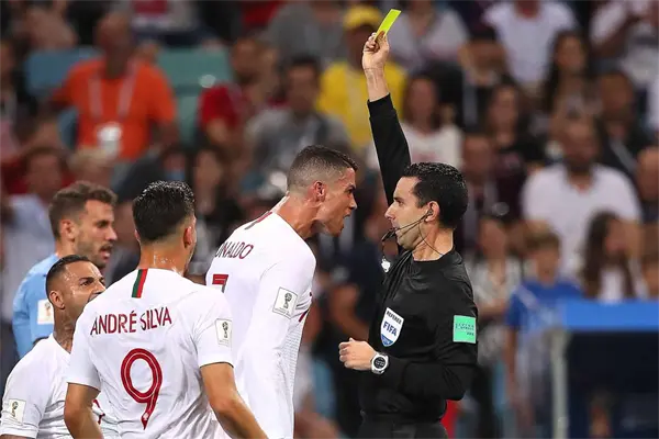 Los jugadores que el central de 34 años ha amonestado son Casemiro (Brasil), Valon Behrami (Suiza), Fabian Schär (Suiza), Stephan Lichsteiner (Suiza), Jan Bednarek (Polonia), Jacek Góralski (Polonia), y Cristiano Ronaldo (Portugal).