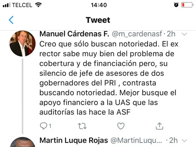 En su cuenta de Twitter el Senador Manuel Cárdenas Fonseca opinó que el exrector de la UAS conoce muy bien el problema de la cobertura y del financiamiento, a lo que consideró que solo busca notoriedad en vez de buscar mejor apoyos financieros para la Universidad.