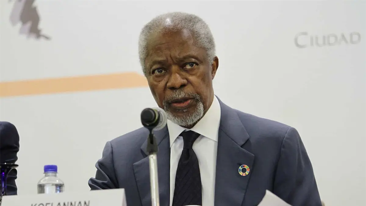 El diplomático, nacido en Kumasi en 1938, ascendió desde un humilde comienzo a la secretaría general de la ONU, donde sirvió dos mandatos (1997-2006) y se hizo acreedor del Premio Nobel de la Paz en 2001, compartido con la ONU.