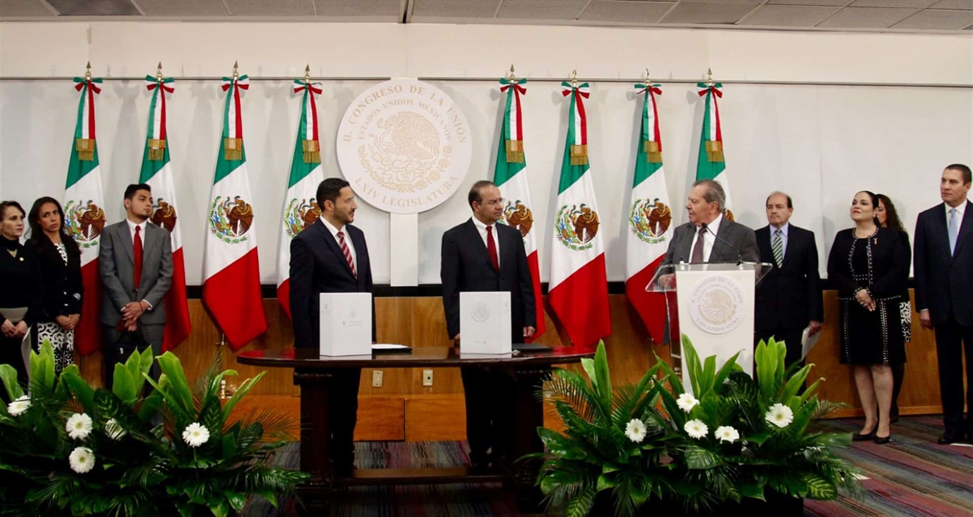 En el Salón de Protocolo del Palacio Legislativo de San Lázaro, Navarrete Prida entregó a Porfirio Muñoz Ledo, Presidente de la Cámara de Diputados, el documento en donde se detalla el estado que guarda la administración pública federal.