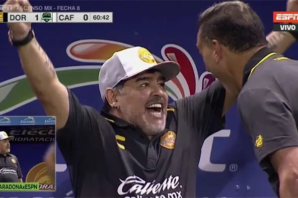 Maradona se paró de la banca en muy pocas ocasiones, desde ahí mandaba sus indicaciones y dialogaba con su asistente –y amigo de toda la vida– Luis Islas (campeón en Mexico 1986), para tratar de hacer alguna mejora en el equipo, pero el tiempo se escapó y cuando el árbitro sonorense Guillermo Pacheco Larios (quien asistía a su quinto partido de Ascenso, a sus 23 años) pitó el final no le quedó más que aplaudir el esfuerzo de sus jugadores con la mirada fija en la cancha.