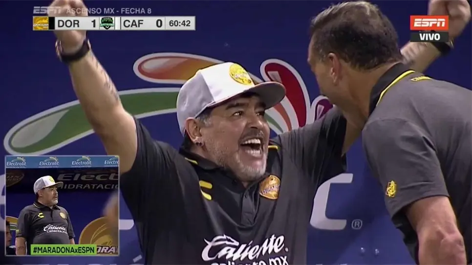 Con el 2-0 a su favor, Dorados se desconcentró y Tapachula se encargó recortar en el marcador con el ariete argentino Sebastián Ariel Ibars (al 63’) y entonces fue cuando Maradona enfureció y desquitó su frustración pegándole al techo de la banca, pues no podía creer lo que sucedía dentro del campo, ya que minutos después del gol visitante, el ‘Hobbit’ Bermúdez le pegó al balón y a pesar de que cruzó la línea de gol el silbante no decretó, empero, en una jugada confusa entre la zaga cafetalera y el propio Ibars (que terminaría expulsado al 73’), el central decide marcar penal y Angulo sella su noche con “Hat-Trick” al 75’.