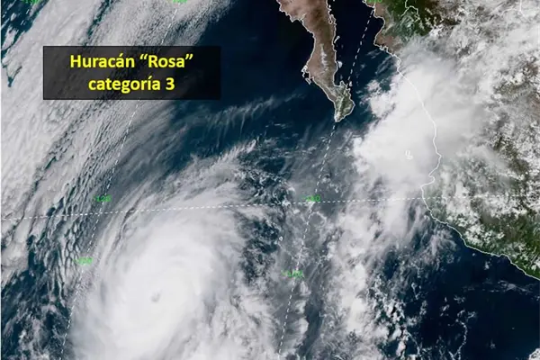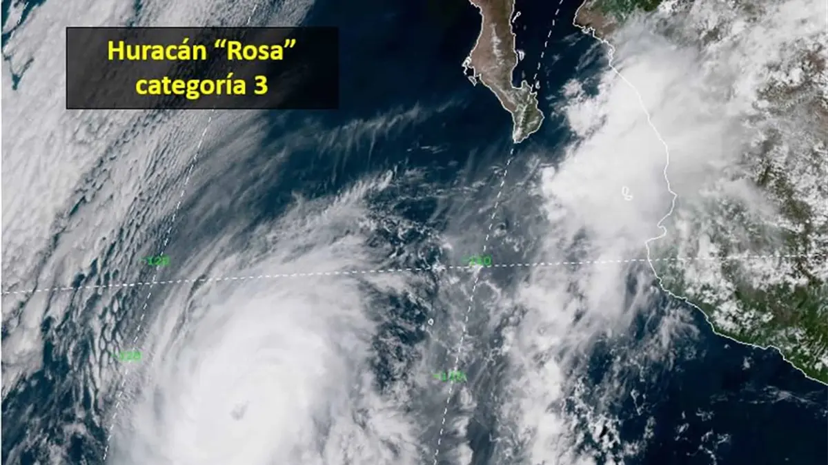 Culiacán, Sin.- “Rosa” huracán categoría 3 en la escala Saffir-Simpson, se localiza al sur de la Península de Baja California; su circulación refuerza el potencial de lluvias y vientos fuertes, así como oleaje elevado en Sinaloa.
