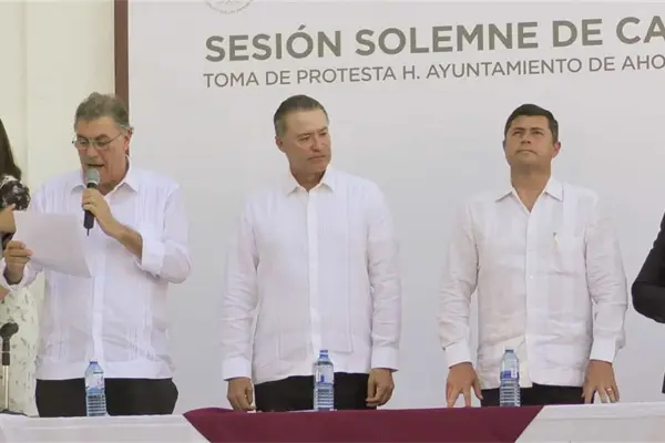 Fue alrededor de las 15:00 horas, cuando Manuel Urquijo Beltrán, alcalde saliente, le tomó protesta a su sucesor y equipo de trabajo que lo acompañará durante los próximos tres años.