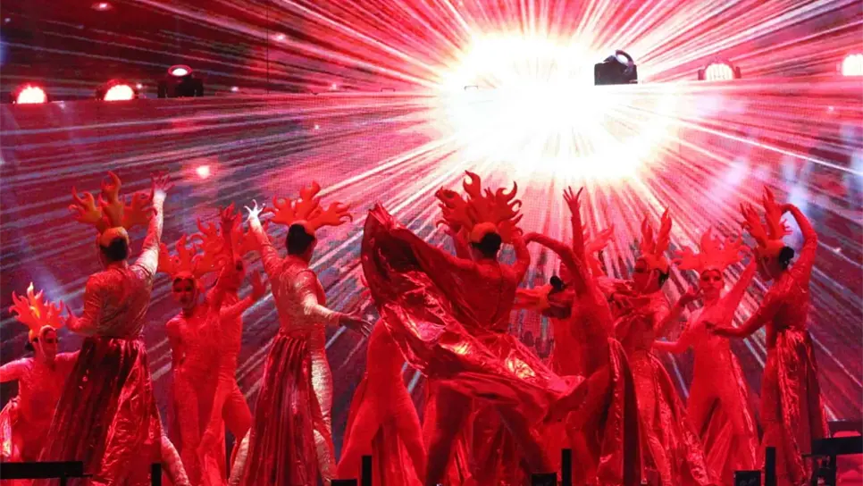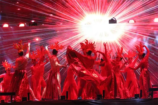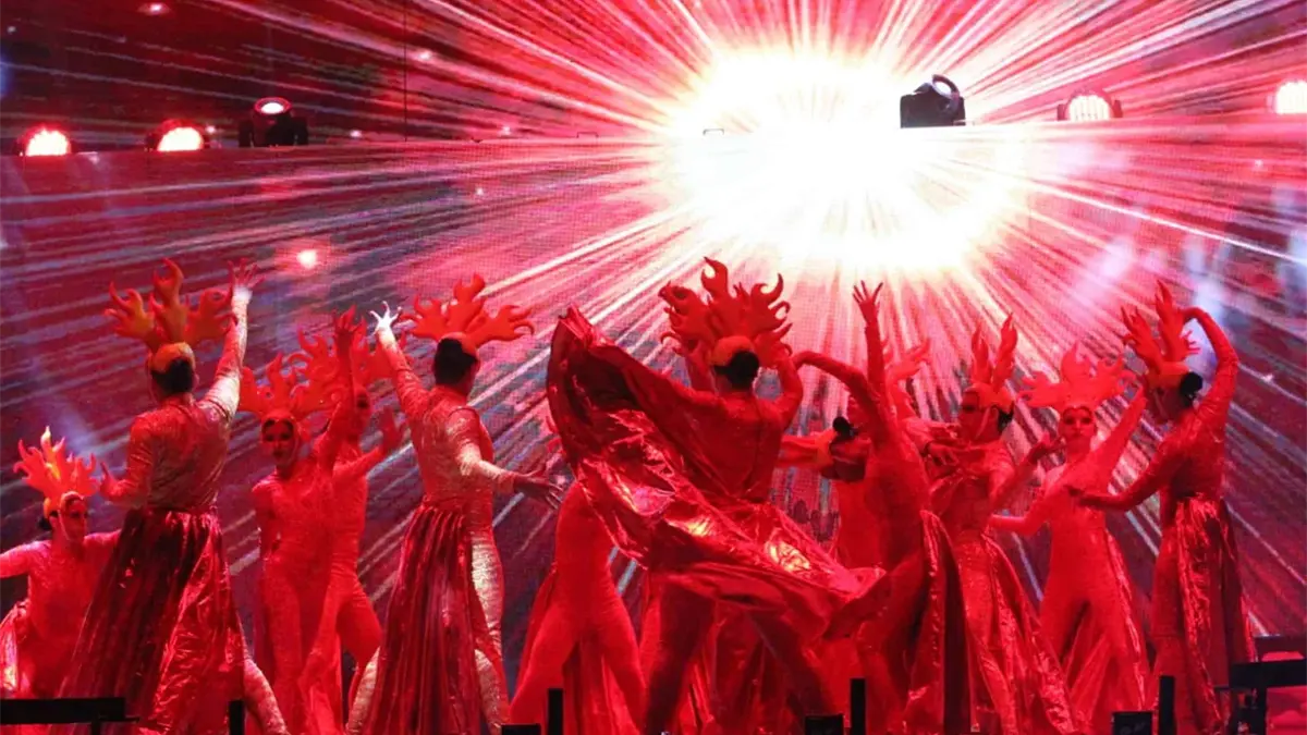 El Instituto Municipal de Cultura y Arte montó un espectáculo de danzas en el escenario y una doble pantalla gigante mostraron a los asistentes el cosmos, el nacimiento y la evolución de un nuevo mundo, tal como lo representa el equinoccio, evento astronómico que marca el comienzo de una nueva era.